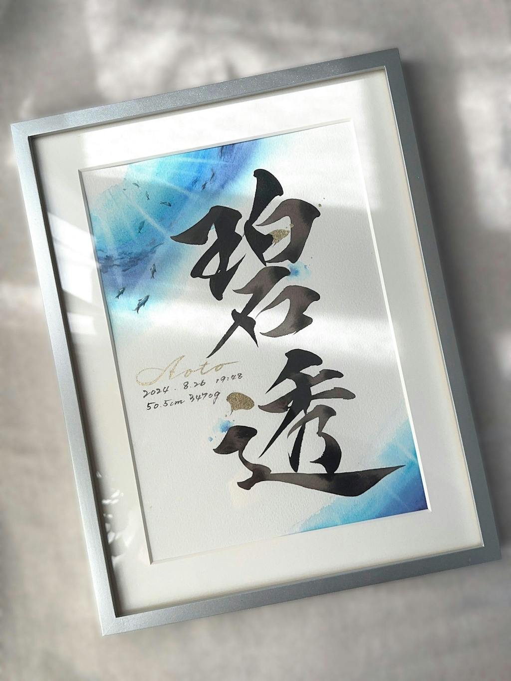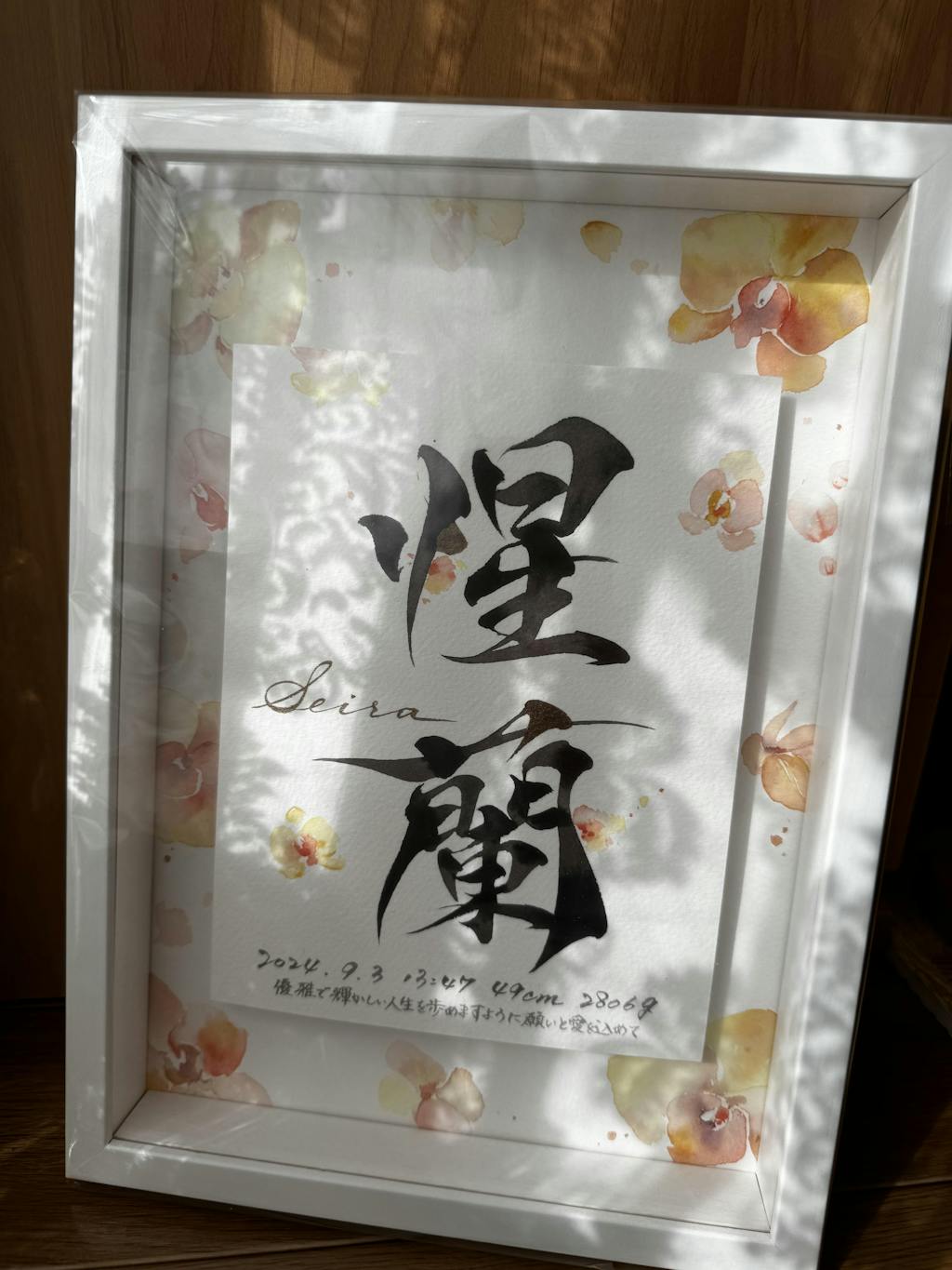 毎回丁寧に名前の由来等聞き取りをしてくださり、名前に込めたイメージ通りの美しい作品に仕上げていただけて、我が子の名前がより特別に感じられて嬉しいです。