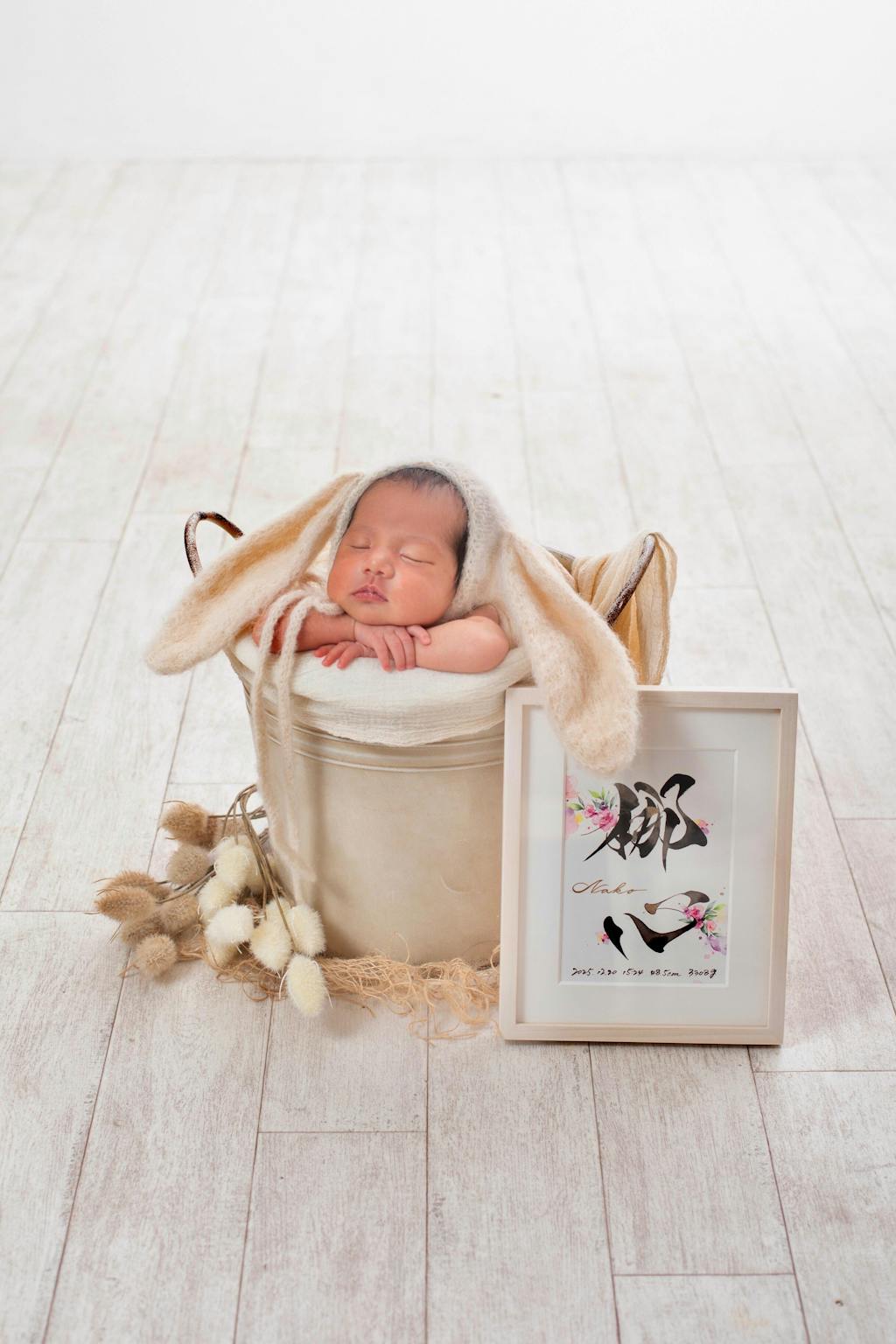 可愛さ、華やかさ、力強さ……とても素敵な作品ができあがり家族みんなで喜んでます。決済前にLINEで打ち合わせができとても安心できました。また、出産後、緊急帝王切開だったため連絡が遅くなってしまいましたが丁寧に対応いただき、入院中のニューボンフォト撮影にも間に合いとても嬉しかったです。ありがとうございました。